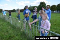 На працягу 30 хвілінаў пацікавіцца, што адбываецца на стадыёне, падышла толькі жанчына з унучкаю. Распытвала яна пра акцыю праваабаронцаў і журналістаў.