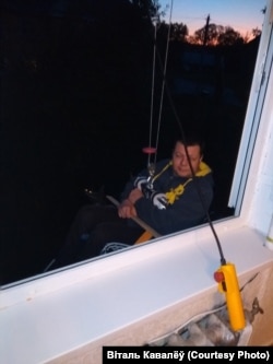 Трапіць праз вакно на вуліцу яму дапамагае знаёмая жанчына, якая ўмее кіраваць прыстасаваньнем. Іншым людзям Віталь свой агрэгат не давярае. Аднак знаёмая можа наведваць Віталя толькі раз на тыдзень. Таму толькі ўвечары ў панядзелак ён можа трапіць на вуліцу. Працэс Віталь зьняў на фота, здымкі даслаў сёньня электронным лістом кіраўніку Беларусі.