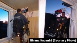 «Лісты мае перасылалі камунальнікам, у сацыяльную службу, але вынік быў адзін — адпіскі. Футболілі туды-сюды. Калі яны мне адмовілі і апошняя надзея на ўладу скончылася — я прыдумаў сам гэтае прыстасаваньне, бо маю тэхнічную адукацыю. Купіў лябёдку, папрасіў суседа дапамагчы, паставіў яму задачу — вось і зрабіў такі „пад’ёмнік“. Тут шмат чаго яшчэ можна ўдасканаліць, дарабіць. Або я іх [чыноўнікаў] дараблю, або пад’ёмнік — адно з двух», — кажа Віталь.