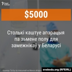 У Беларусі апэрацыі зьмены полу іншаземцам робяць толькі ў Менскай абласной клінічнай лякарні. Апэрацыя каштуе каля 5000 даляраў, сюды ўваходзіць лячэньне і тыдні два ў шпіталі.