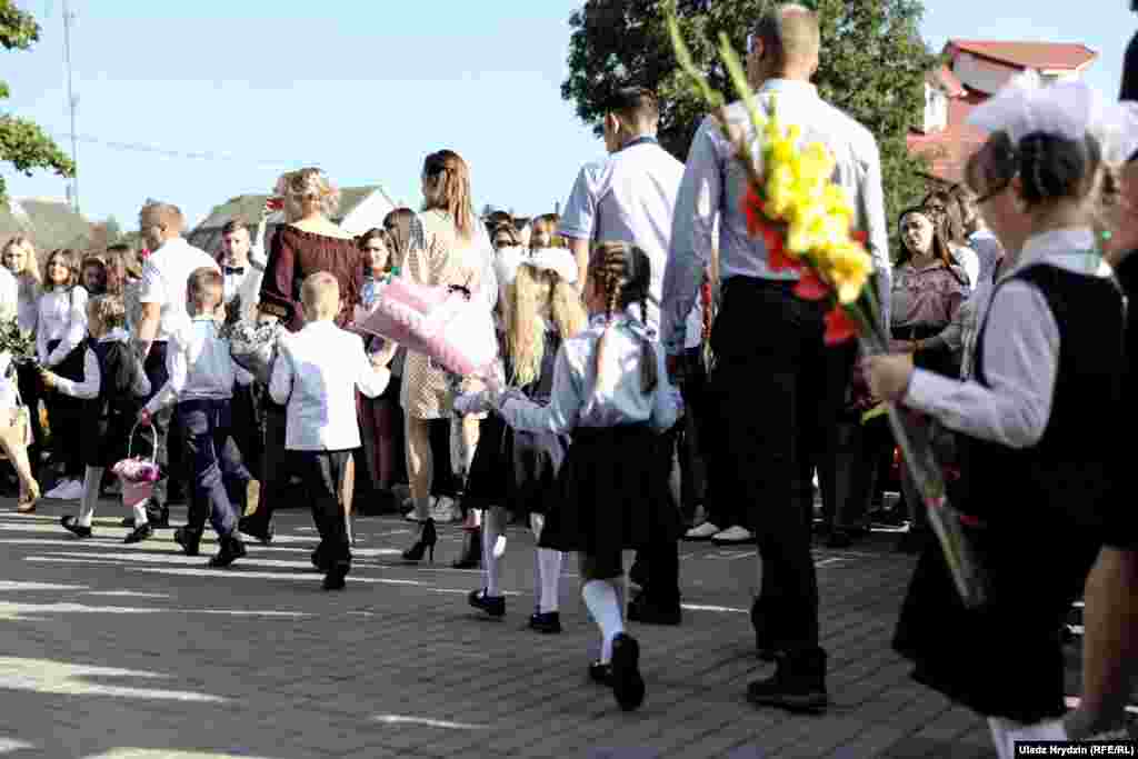 Урачыстая лінейка ў стаўпецкай школе №2, дзе ў лютым 2019 году адбылося двайное забойства, прайшла з удзелам новага дырэктара Аляксея Судніка.