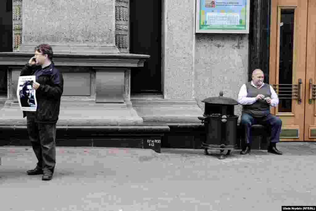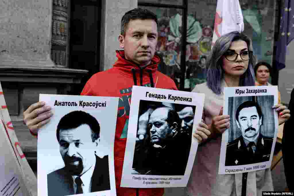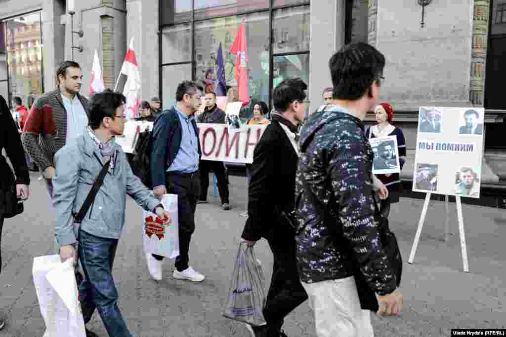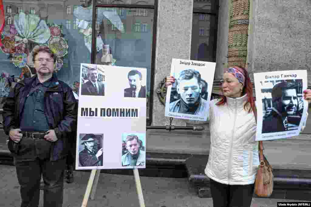 У цэнтар Менску выйшлі людзі з партрэтамі зьніклых палітыкаў. ФОТА