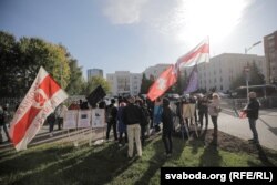 Удзельнікі акцыі адказалі, што гэта пікет па зборы подпісаў за кандыдата ў дэпутаты, і што яны знаходзяцца ў больш як 50 мэтрах ад суду.