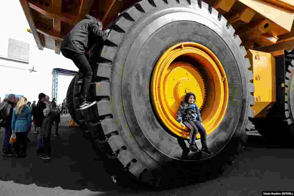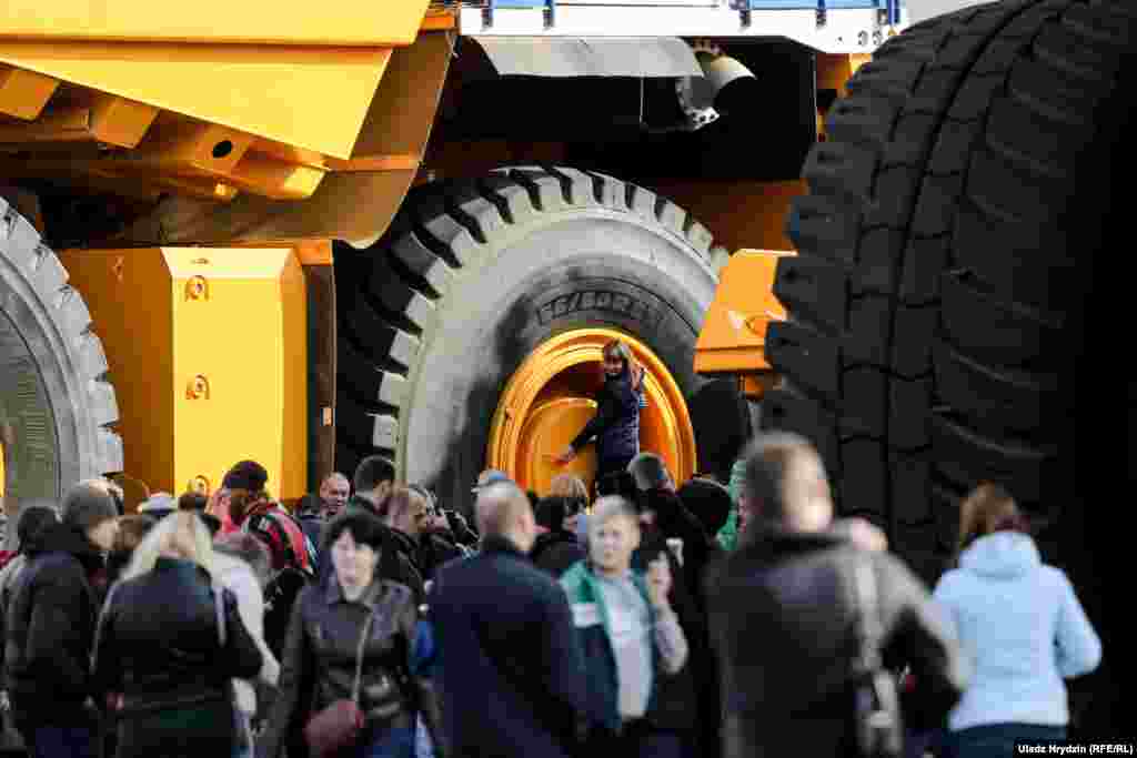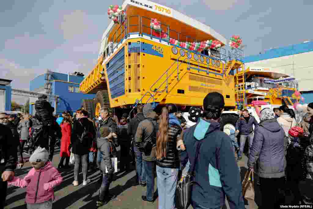 Сёньня ў Жодзіне завод БелАЗ з нагоды дня машынабудаўнікоў арганізаваў дзень адчыненых дзьвярэй. Тысячы чалавек прыйшлі паглядзець на самыя вядомыя ў сьвеце беларускія самазвалы.