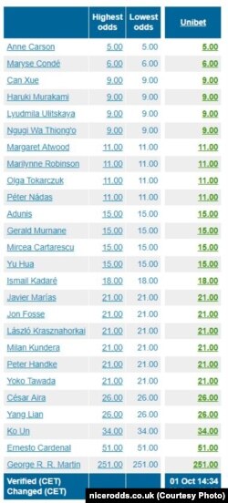 Я ўсё чакаю, што яе дадуць дацкаму паэту Генрыку Нордбранту, якога ў сьпісе Nicer Odds няма. Як, дарэчы, няма і ніводнага беларускага прозьвішча.