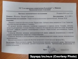 Ільіных зрабіў абсьледаваньне ў прыватнай клініцы, якое паказала падазрэньне на хіятальную грыжу. Як ён сам кажа, гэта нешта накшталт адтуліны ў страваводзе. У паліклініцы Ільіных рэнтген выявіў грыжу 1-й ступені.