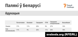 Адносна вышэйшай адукацыі прапорцыя была адваротная: сярод палякаў тых, хто мае вышэйшую адукацыю, прыкладна на чвэрць менш, чым выпускнікоў ВНУ сярод усяго насельніцтва.
