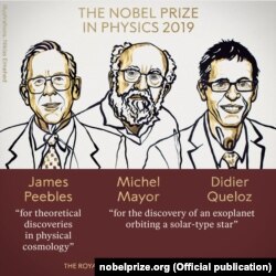 Нобэлеўскую прэмію 2019 году ў галіне фізыкі атрымалі Джэймс Піблз «за тэарэтычныя адкрыцьці ў фізычнай касмалёгіі» ды Мішэль Маёр і Дыд’е Кэлёз «за адкрыцьцё экзаплянэты на арбіце вакол зоркі сонечнага тыпу».