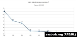 Наступны графік паказвае, як мянялася доля габрэйскага насельніцтва на беларускіх землях паводле перапісаў Расейскай імпэрыі, БССР і Рэспублікі Беларусь.