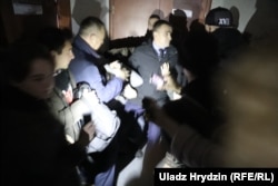 «Людзі ў цывільным» ужываюць гвалт супраць тых, хто прыйшоў падтрымаць Паліенку. Пацярпелі Ніна Багінская, Сяргей Спарыш, Максім Вінярскі, актывісты анархісцкага руху.