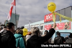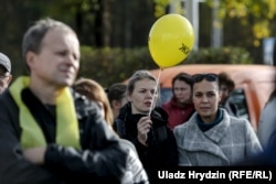 Актывісты выступілі на пікеце кандыдатаў ад БСДП (Грамада) Ігара Маслоўскага і Ганны Канюс.