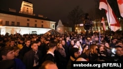 Паводле розных ацэнак на Плошчы Свабоды сабралася ад некалькіх сотняў да дзьвюх тысяч чалавек.