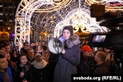 18.21 Слова бярэ рэжысэрка і грамадзкая актывістка Вольга Мікалайчык, якая некалі была выканаўчым прадусарам фільму "Звычайны прэзыдэнт". Яна заявіла, што ўладу заўсёды мяняе вуліца і заклікала беларусаў выходзіць на мітынгі.