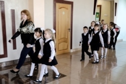Дырэктарка расказвае, што гімназія — у старым раёне, дзе ня так шмат дзяцей. Але сюды зьбіраюцца з усяго гораду. Сёлета ў тры першыя клясы сабралі 60 дзетак.
