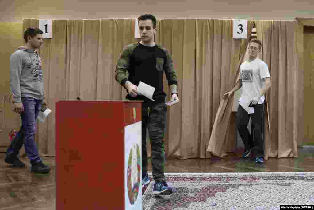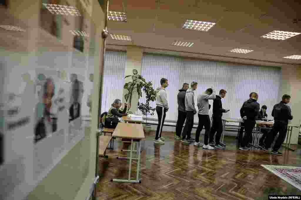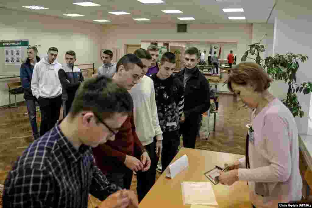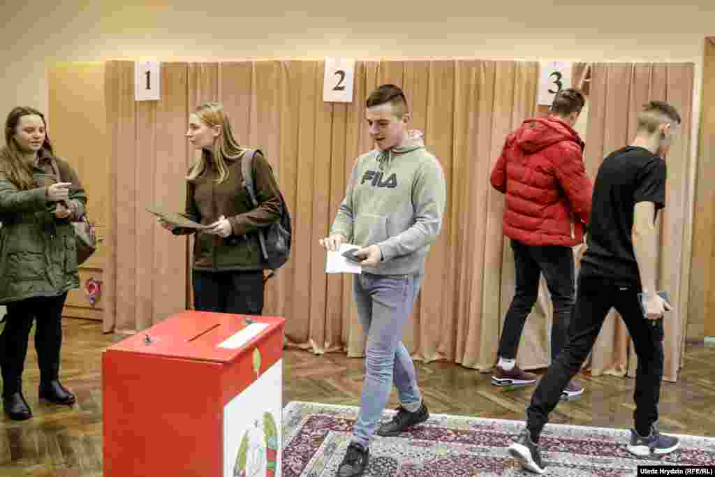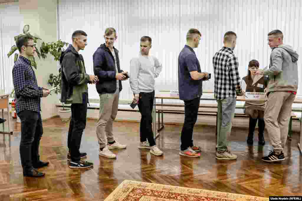 На ўчастку 550 Коласаўскай акругі ў Менску 12 лістапада было людна. Жыхары інтэрнату БНТУ сьпяшаліся аддаць свой голас у першы ж дзень датэрміновага галасаваньня.