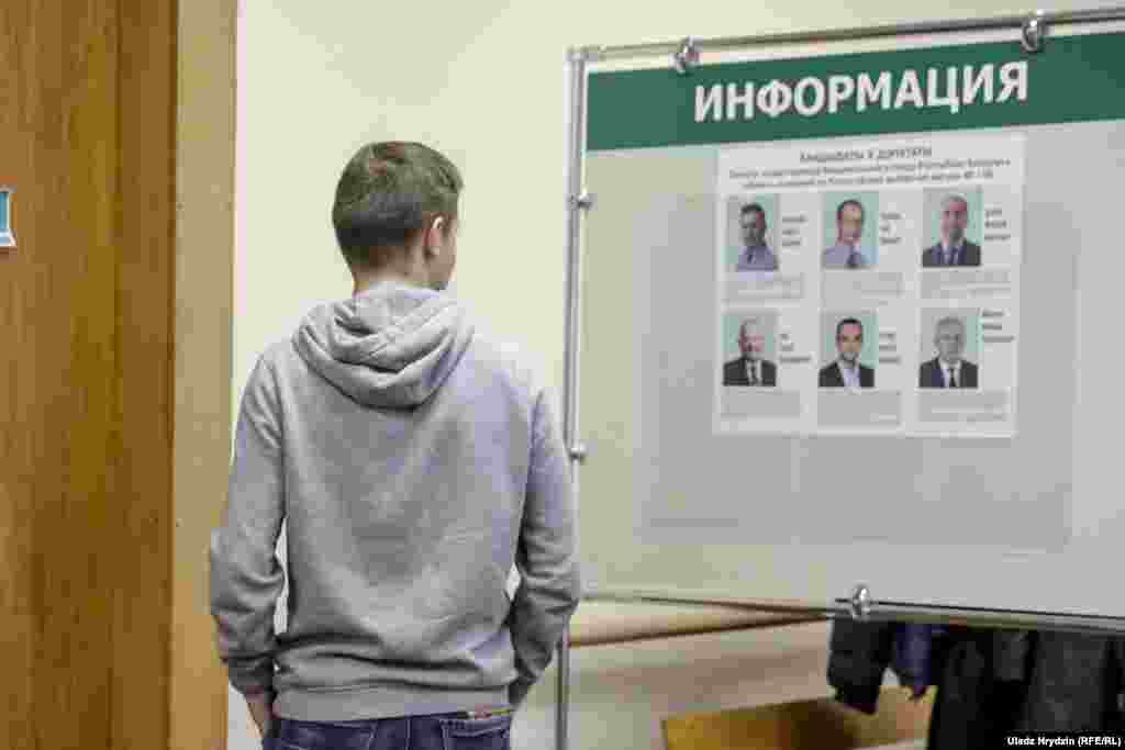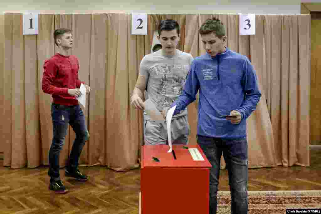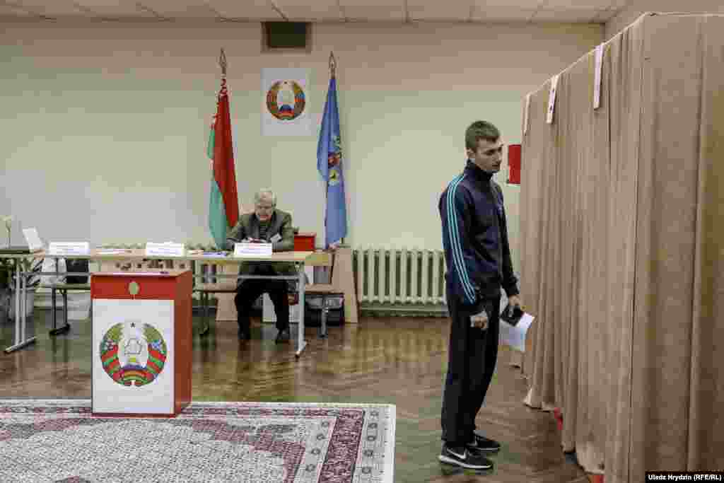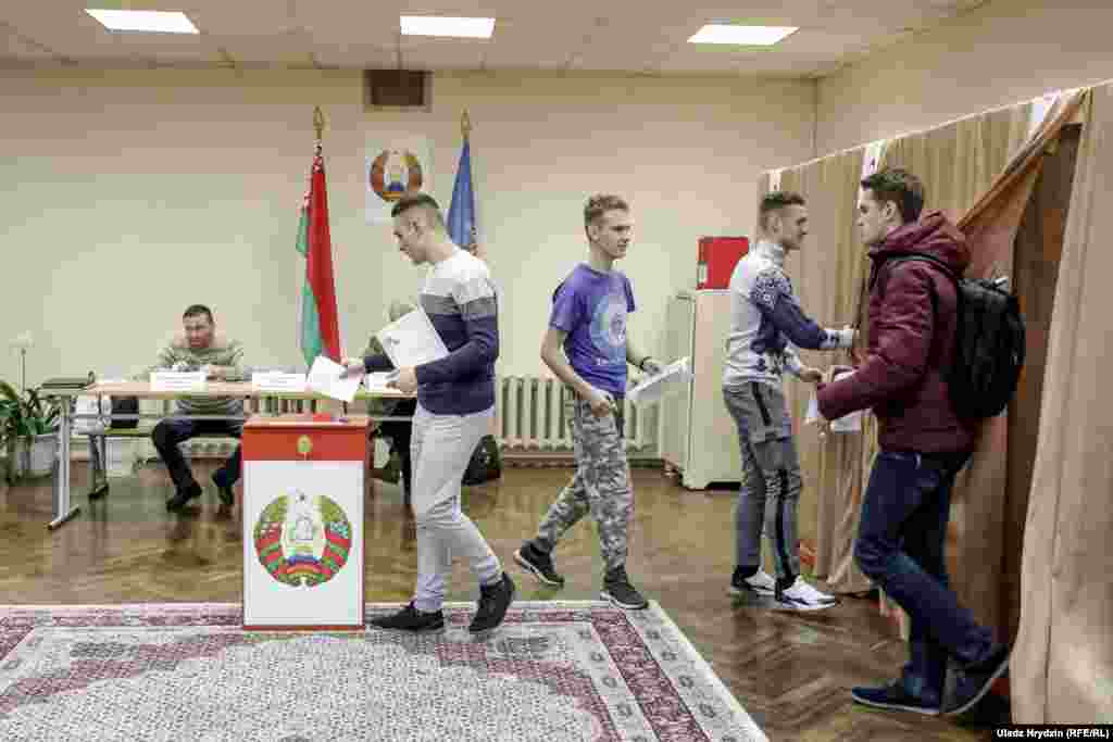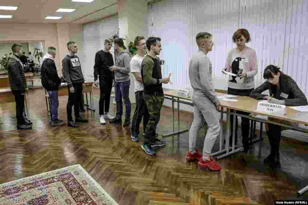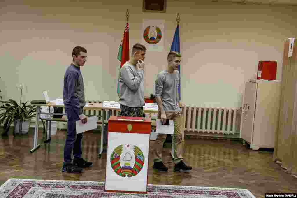 На ўчастку 550 Коласаўскай акругі ў Менску 12 лістапада было людна. Жыхары інтэрнату БНТУ сьпяшаліся аддаць свой голас у першы ж дзень датэрміновага галасаваньня.