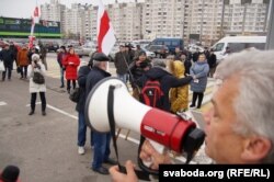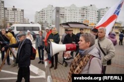 Блогер Сяргей Ціханоўскі і актывістка кампаніі «Маці 328» Тацяна Канеўская падчас пікету