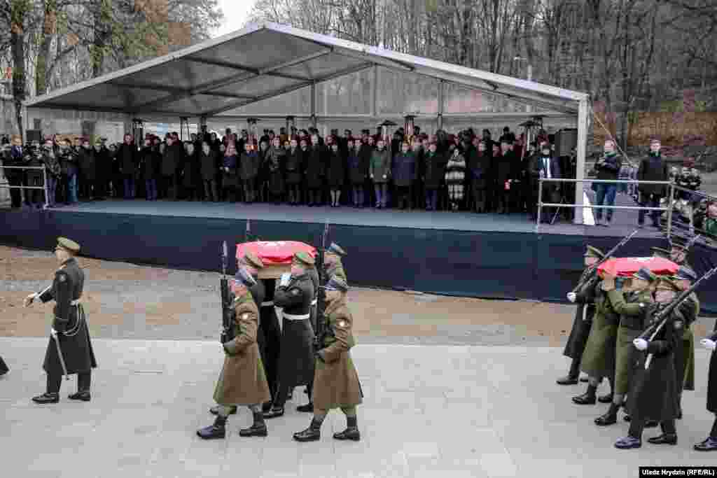 Цырымонія пахаваньня Кастуся Каліноўскага і паўстанцаў 1863–64 гадоў праходзіць у Вільні 22 лістапада. Свабода вядзе жывую відэатрансьляцыю. Ад 11 гадзінаў па віленскім часе пачалася адкрытая грамадзкая цырымонія разьвітаньня, пазьней парэшткі паўстанцаў панясуць празь гістарычны цэнтар Вільні на могілкі Росы.