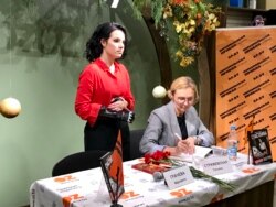 Падчас прэзэнтацыі кнігі Маргарыты Грачовай «Шчасьлівая бяз рук». Менск, 21 лістапада 2019 году
