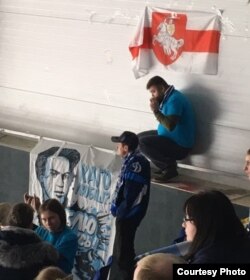 Як беларускія заўзятары ўшанавалі памяць Каліноўскага на хакейным матчы ў Расеі. ФOТА