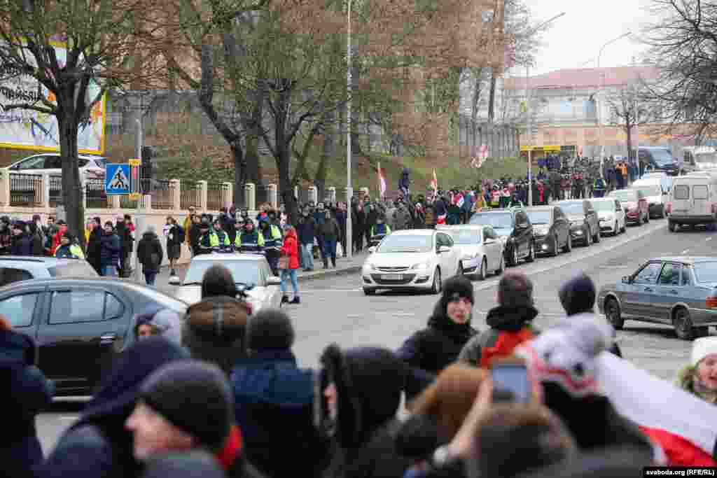 Супрацоўнікі ДАІ суправаджалі пратэстоўцаў увесь час.