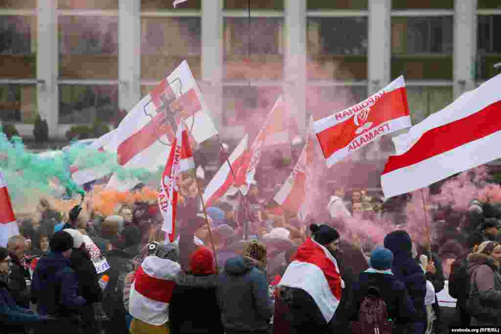 Пасьля выступаў палітыкаў і пісьменьнікаў на Кастрычніцкай плошчы, пратэстоўцы прайшлі шэсьцем па праспэкце Незалежнасьці да плошчы Незалежнасьці.