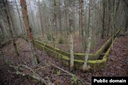 На зарослай лесам тэрыторыі ёсьць бэтонныя канструкцыі, якія нагадваюць ачышчальныя збудаваньні.