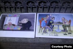 Паводле арганізатараў, частку плякатаў намаляваў славацкі палітычны карыкатурыст Марыян Каменскі.