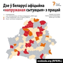 Раней 45% раёнаў Беларусі былі «з напружанай сытуацыяй на рынку працы». Цяпер больш за палову тых раёнаў перасталі быць «праблемнымі», але зьявіліся новыя «напружаныя».