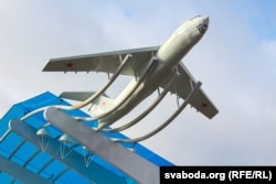 Павільён трымаецца на мэталічных каркасах і накрыты блакітным празрыстым арганічным шклом. Наверсе — фігура вайкова-транспартнага самалёта Іл-76 з чырвонымі зоркамі на крылах і хвасьце.