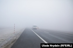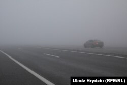 Пад Івацэвічамі ў густы туман на трасе Берасьце — Менск трапіў фотакарэспандэнт Свабоды.