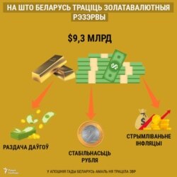 Цяпер золатавалютныя рэзэрвы складаюць 9,4 мільярда даляраў. За год яны вырасьлі на 2,2 мільярда, хоць летась Беларусь таксама выплаціла амаль 4,2 мільярда даляраў пазыкаў.