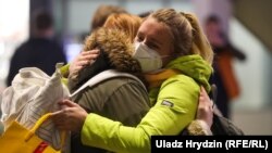 «Гэта ёсьць, разьбіраюць, але хутка завозяць новыя. А ў аэрапорце дык раздаюць маскі, вось мне гэтую далі. Я не здымала яе і ў самалёце, ніхто не здымаў. Дазвалялі здымаць, толькі каб паесьці ці папіць», — расказала Юля.