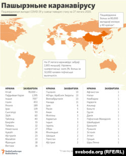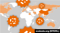 Ужо ў 40 краінах. Каранавірус у сьвеце адной карцінкай