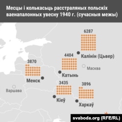 - У Беларусі забілі каля 3 800. Польскія дасьледнікі, у адрозьненьне ад беларускіх, мяркуюць, што іх пахавалі ў Курапатах.
