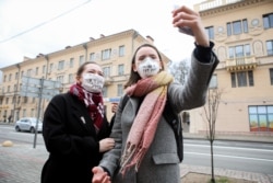«Ха-ха, я тут памру». Студэнткі зрабілі акцыю за карантын каля лінгвістычнага ўнівэрсытэту. ФОТА, ВІДЭА