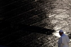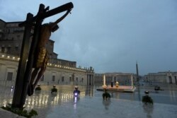 Папа Францішак памаліўся на пустой плошчы сьвятога Пятра, каб сьвет пазбавіўся каранавірусу. ФОТА