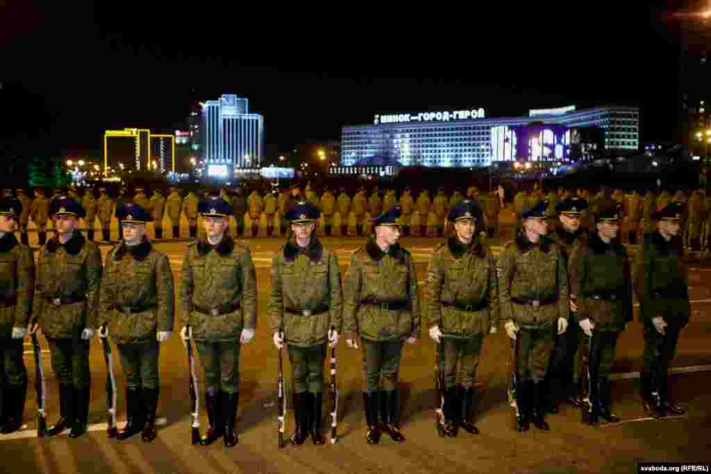 Нягдедзячы на пашырэньне пандэміі каранавірусу, у Менску працягваюцца рэпэтыцыі да параду на 9 траўня. Увечары 6 красавіка каля стэлы «Менск — горад-герой» адбылася трэніроўка роты ганаровай варты.