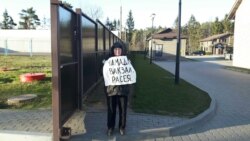 73-гадовая Ніна Багінская штоаўторак прыходзіць на традыцыйную варту ў Курапатах каля рэстарацыі «Поедем поедим».