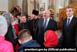 Аляксандар Лукашэнка і ягоны малодшы сын Мікалай на Вялікдзень наведалі Сьвята-Дабравешчанскі храм у вёсцы Малыя Ляды ў Смалявіцкім раёне
