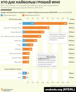 Наглядна: ад каго Сусьветная арганізацыя здароўя атрымлівае найбольш грошай
