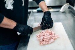 Пакуль абед гатуецца, трэба раскласьці аднаразовы посуд. Аляксандар — афіцыянт. Сёньня ягоная праца — падрыхтаваць аднаразовыя кантэйнэры для супу, у тэрмаўстойлівыя ланчбоксы пакласьці фольгу, каб стравы хутка ня стылі, сурвэткі і аднаразовыя прыборы.