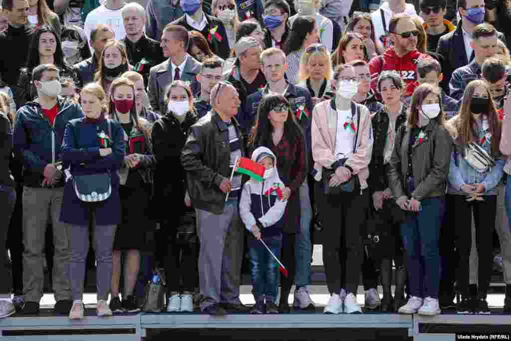 Фотакарэспандэнт Свабоды паназіраў за менскім парадам і яго наведнікамі.