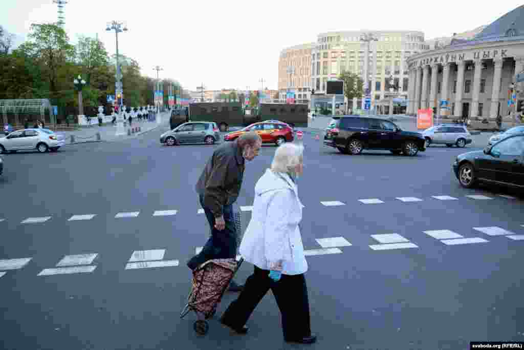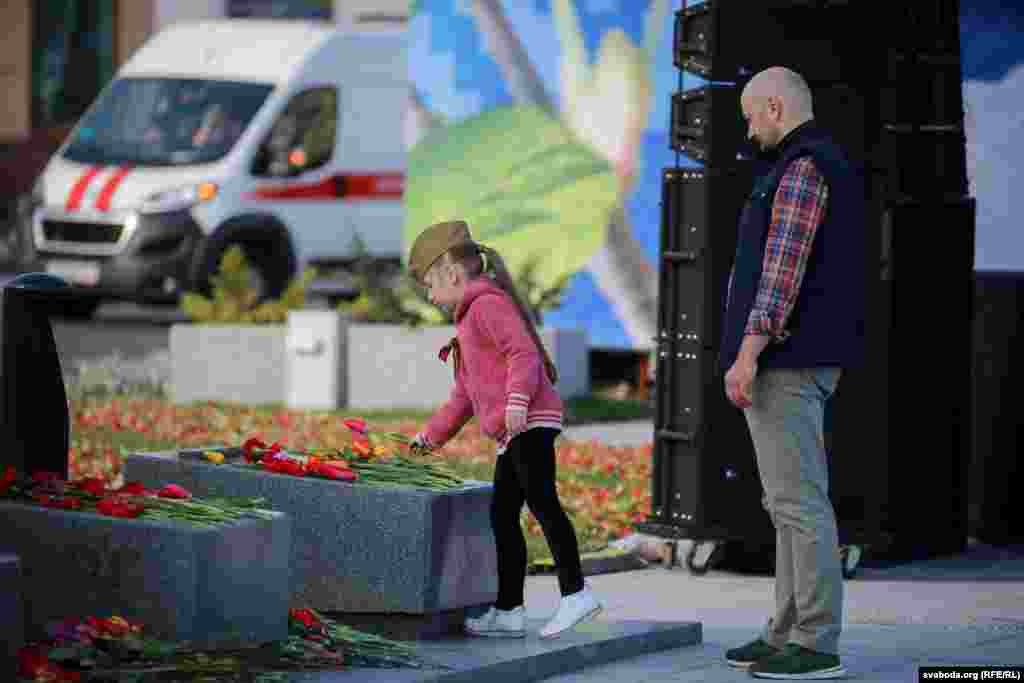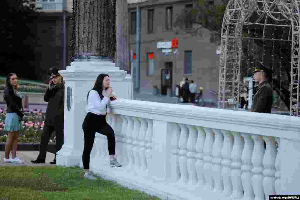Сэлфі ля вечнага агню, пустыя вуліцы і салют. Плошча Перамогі 9 траўня. ФОТА