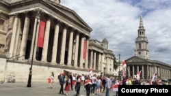 Лёндан: Трафальгарская плошча ў бел-чырвона-белых сьцягах