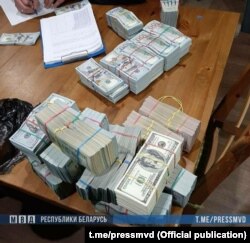 У паведамленьні МУС зазначана, што з санкцыі пракуратуры, у прысутнасьці панятых і маці Ціханоўскага знайшлі радыёстанцыі, фінансава-гаспадарчыя дакумэнты, пячаткі суб’екта гаспадараньня, машынку для падліку грошай і ўласна валюту — 900 тысяч даляраў ЗША.