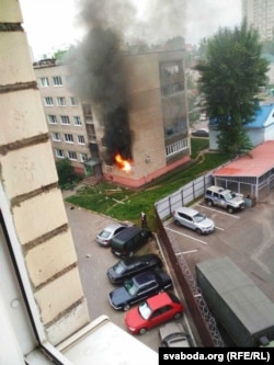 «Пад’ехала газавая аварыйка, значыць у некага газ ірвануў», — піша ў Фэйсбуку Антон Астаповіч, які назірае пажар з вокнаў свайго дому.