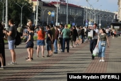 18:00. Пікет каля будынку Белдзяржфілярмоніі ў Менску. Людзі выказваюцца на мікрафон Свабоды: