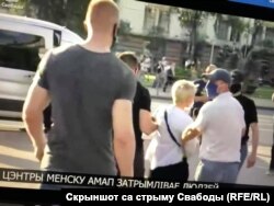19:48. АМАП затрымлівае аднаго за адным двух чалавек, спрабуе затрымаць фотакарэспандэнта Свабоды. Журналістаў просяць адысьці.