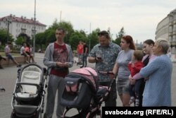 Аднак сёньня ў Горадні няма «ланцугу салідарнасьці», якая была напярэдадні. Гараджане проста гуляюць па цэнтры горада ў раёне плошчаў Савецкай і Леніна. На плошчы Леніна людзі паставілі тапкі затрыманага Амплеева, якога затрымалі і павезьлі басанож.